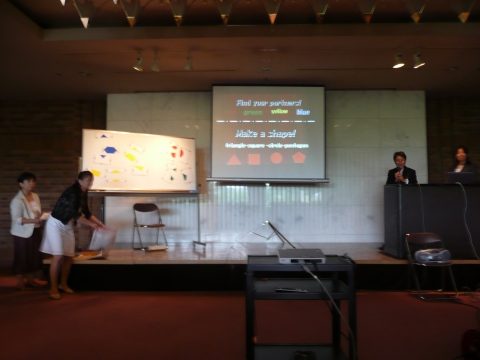 自信に満ちた教師像 をあげていました。 ほかは手遊びや体操、合唱などをし、とても元気のでるものでした。(青木)