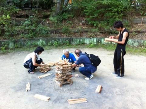 キャンプファイヤーをくんで、