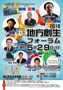 北海道夕張郡 由仁町文化交流館(ふれーる)にて、「2016地方創生フォーラム」が開催されます。